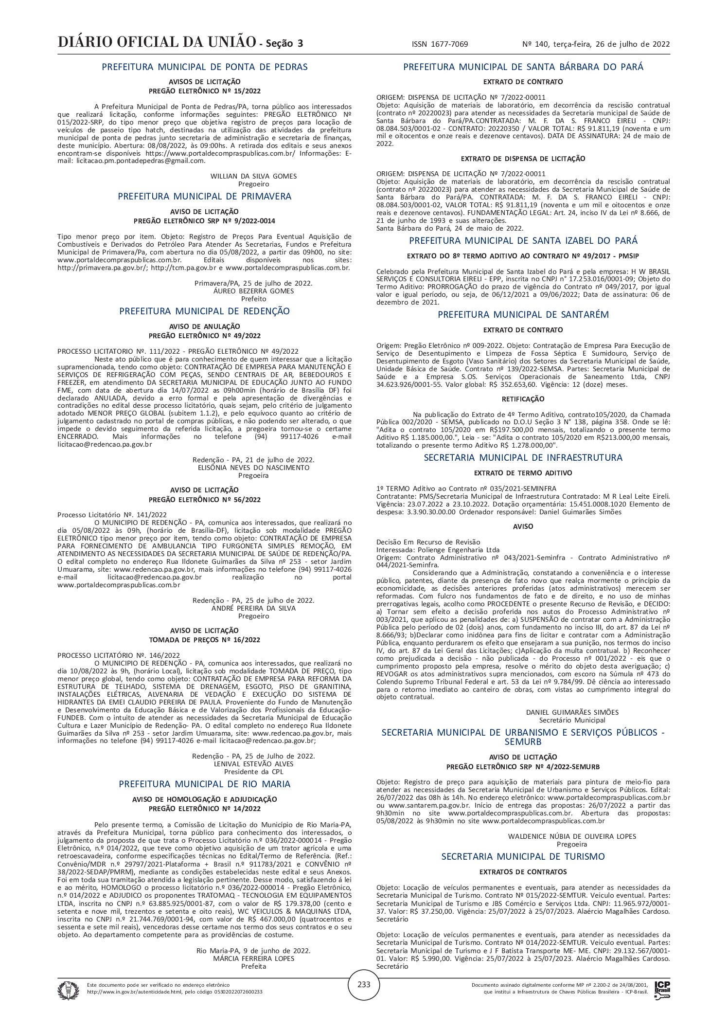 PRIMAVERA – D.O.U – 26.07.2022